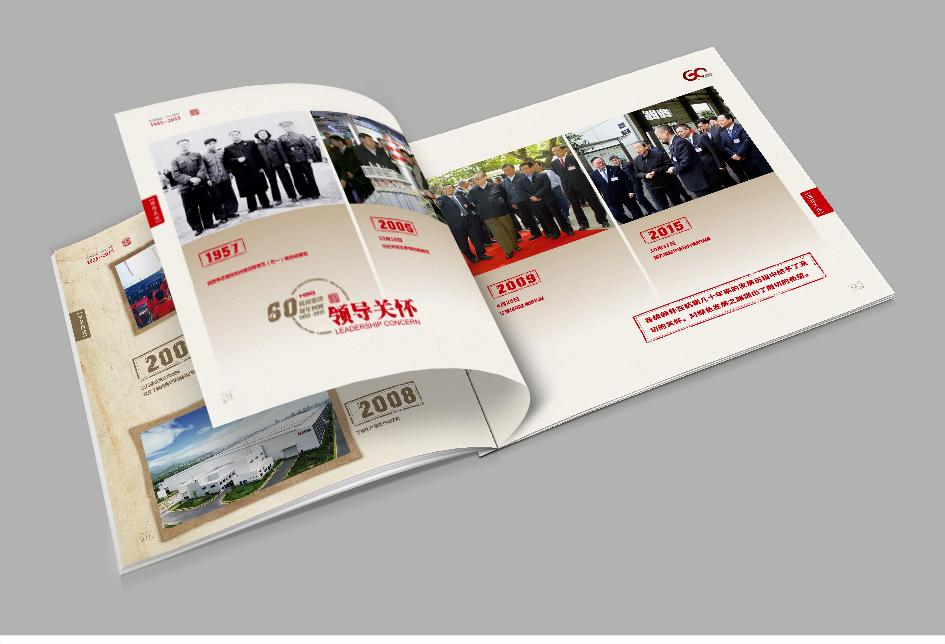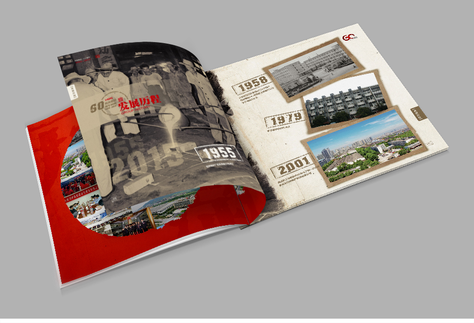 杭鍋集團成立于1955年,是杭州老牌國企,2011年登陸A股,曾受到周恩來、習近平、江澤民等國家 領導人的親切關懷,杭州銘陽廣告公司于2014年開始與杭鍋集團建立長期業務合作,先后為集團及其下 屬企業服務,成功策劃設計了杭鍋60周年慶宣傳冊,這本宣傳冊設計大氣磅礴,又不失精致,完美展示 了杭鍋60年來的一路風雨歷程,一座榮譽豐碑,極具收藏價值。銘陽創作團隊還參與了杭鍋集團產品畫冊 設計,臺歷設計,各類展會設計,招聘海報設計等。